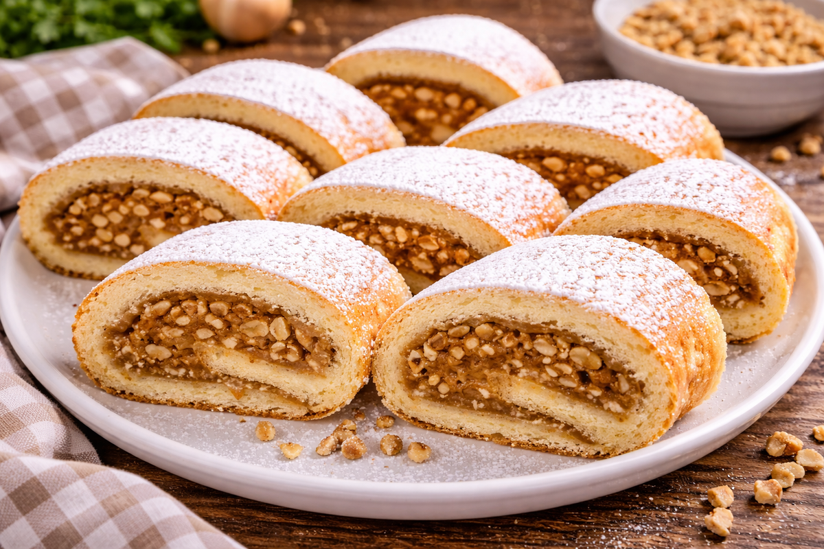 Сгущёнку соединяют с кефиром, добавляют соль, соду и ванилин, хорошо перемешивают. Постепенно всыпают муку и замешивают тесто до консистенции негустой сметаны. Противень застилают пергаментом и смазывают маслом. Выливают тесто, равномерно распределяют и выпекают при 150–170 °C около 20–25 минут до румяного цвета. Горячий корж смазывают варёной сгущёнкой, посыпают орехами и аккуратно сворачивают в рулет, отделяя бумагу. Оставляют до полного остывания, затем нарезают на кусочки. Подают к чаю — нежно, ароматно и очень вкусно, пишет PopCornNews.