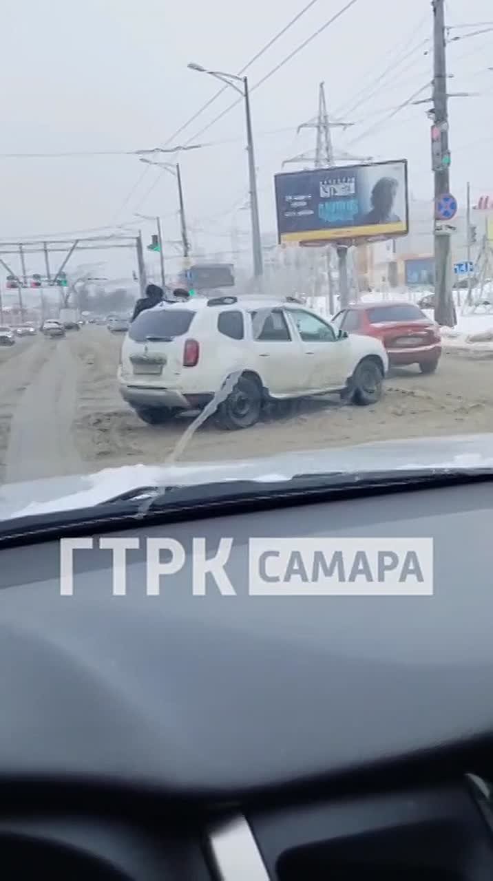На центральной полосе одной из главных транспортных артерий города встал автомобиль Renault Duster, затруднив проезд потоку машин, сообщает наш мобильный корреспондент.