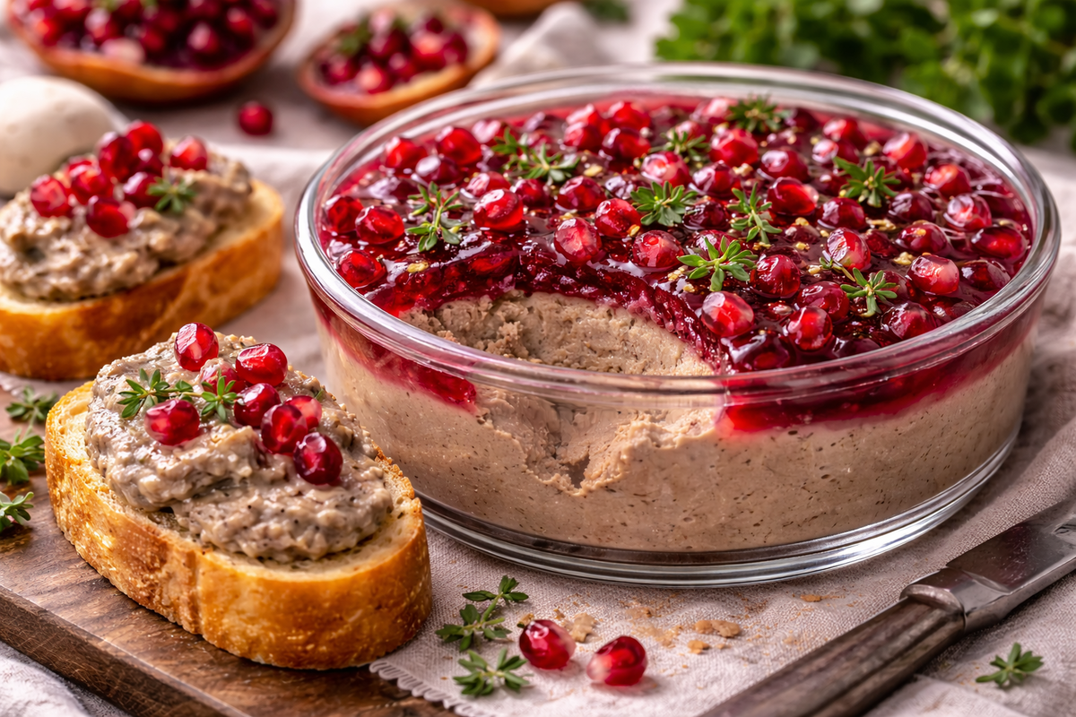 Раньше куриную печень брала только для подливы, а теперь делаю из неё настоящий французский паштет, который улетает первым — и на празднике, и просто к ужину. Нежный, сливочный, с лёгкой пряной ноткой и красивым гранатовым желе сверху. Никто не верит, что основа — самая обычная печёнка из магазина. Главный секрет — немного сала для бархатной текстуры, коньяк для аромата и специи, которые превращают простое блюдо в ресторанную закуску.