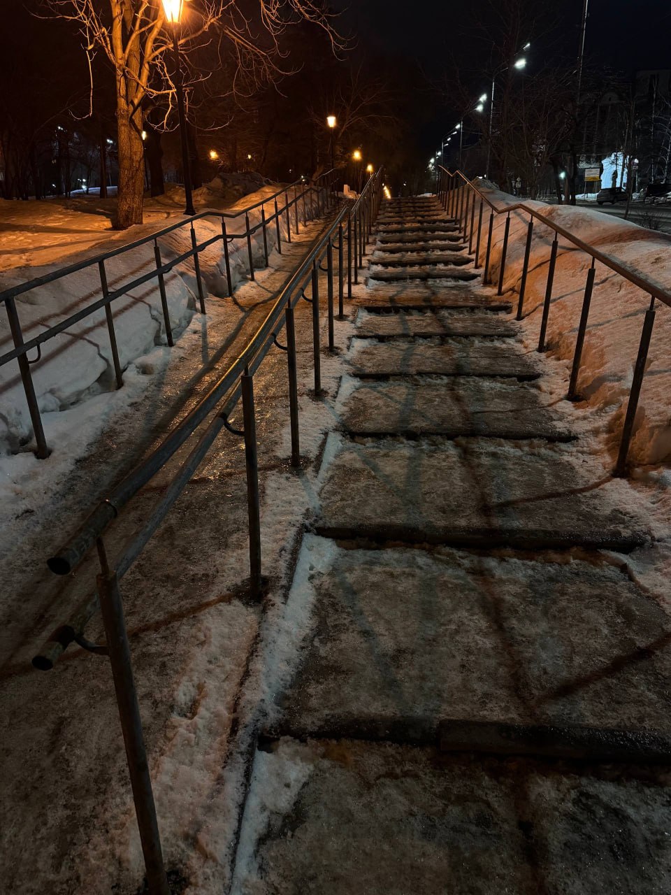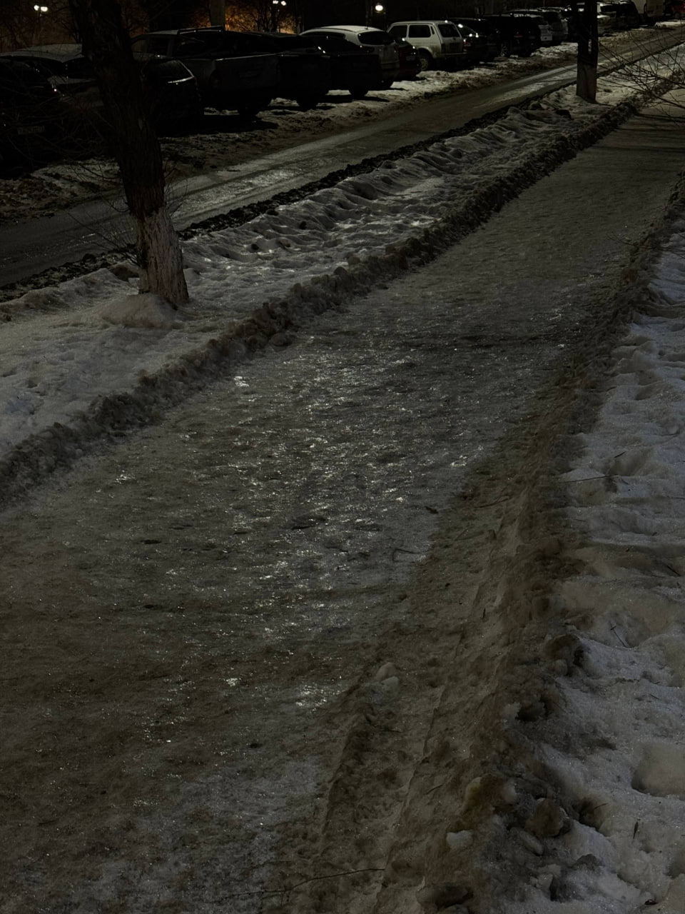 «Возле дома №4 невозможно идти, приходится буквально скользить по дороге. Такая же ситуация наблюдается у соседних домов. Здесь расположен спуск к Волге, и, что особенно тревожно, на пути находится опасная ледяная лестница!», — сообщают горожане.