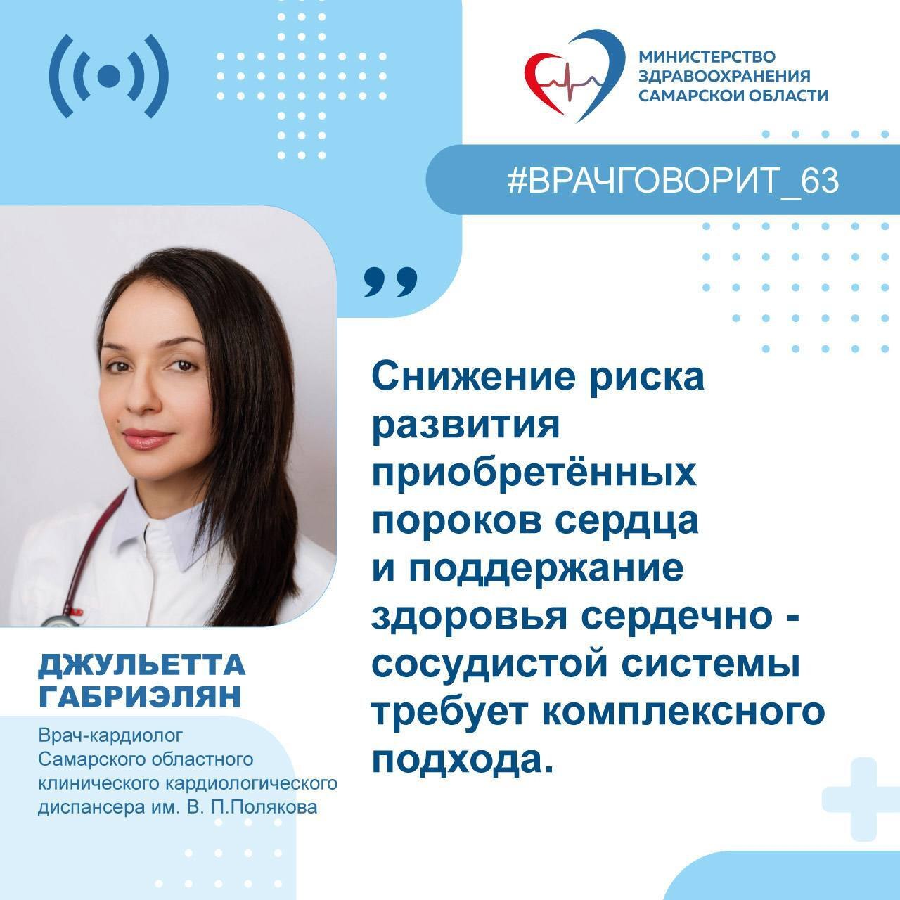 Об этом рассказала врач-кардиолог Самарского областного клинического кардиологического диспансера им. В. П.Полякова Джульетта Габриэлян