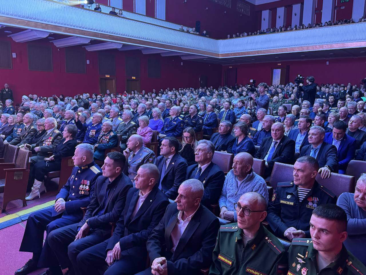 В зале собрались защитники Отечества, родные и близкие бойцов.