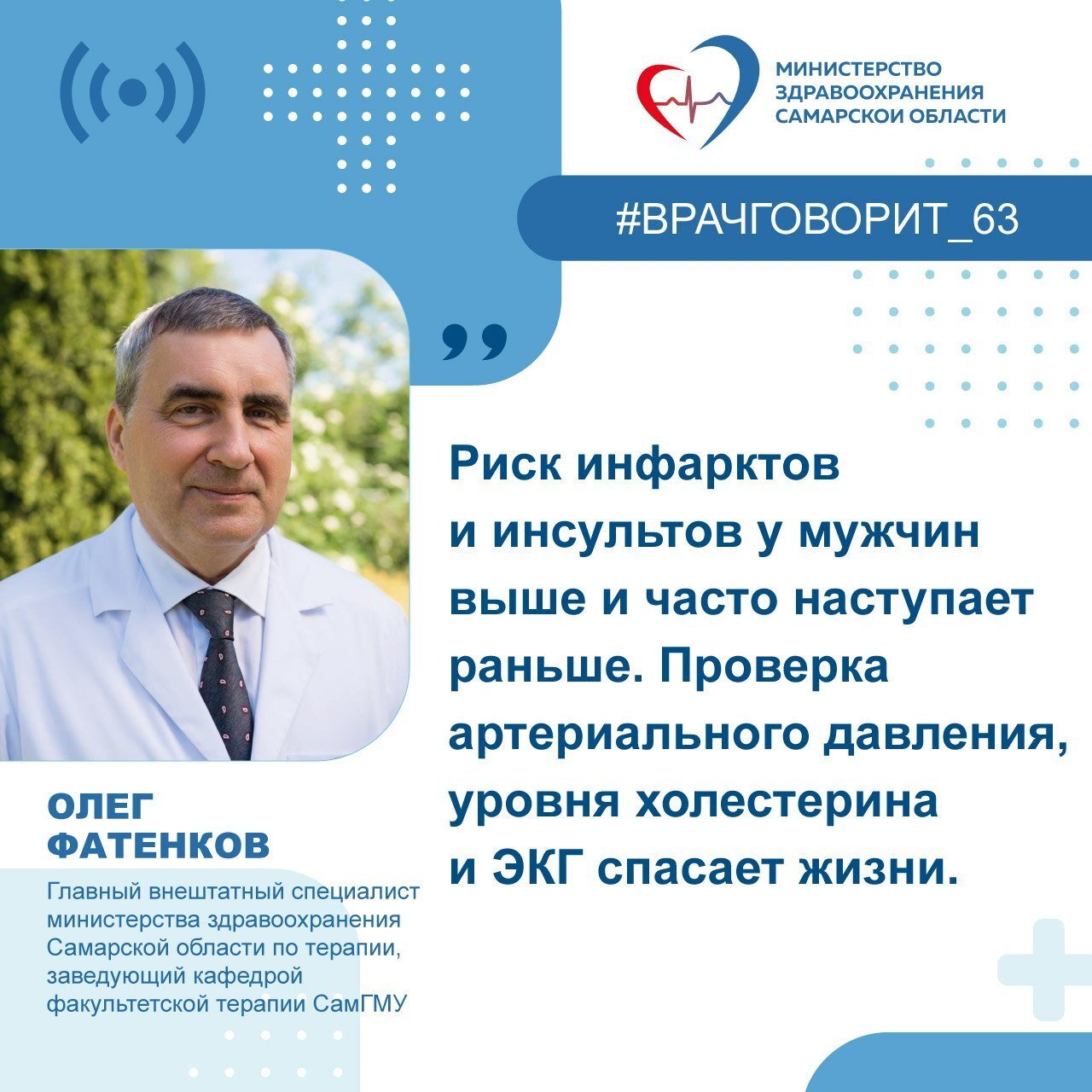Об этом рассказал главный внештатный специалист министерства здравоохранения Самарской области по терапии, заведующий кафедрой факультетской терапии СамГМУ Олег Фатенков
