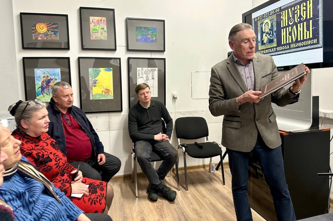 На презентацию издания были приглашены и сызранцы. Учредитель музея Сызранской иконы Александр Макаров рассказал о своей коллекции. Показал самые ценные образы, в том числе работы Александра Архиповича Бочкарёва. И передал в дар музею имени Рублёва свою книгу «Сызранская икона в духовной культуре России».