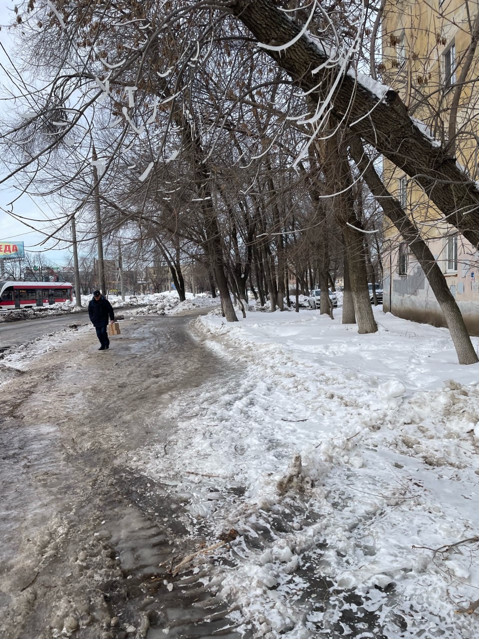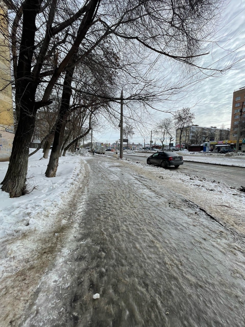 Самарцы жалуются на гололед на тротуаре от ул. Ивана Булкина, 80 до Центрального автовокзала