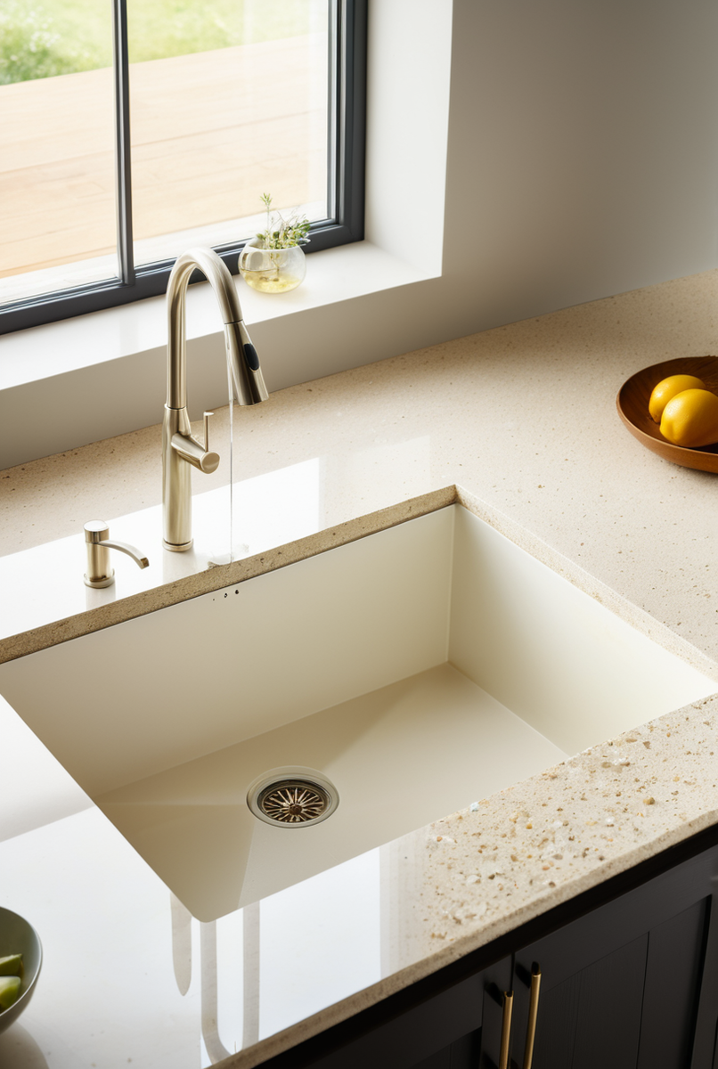 - Гигиеничность: Отсутствие пор предотвращает впитывание запахов и рост бактерий, упрощая уход за мойкой.