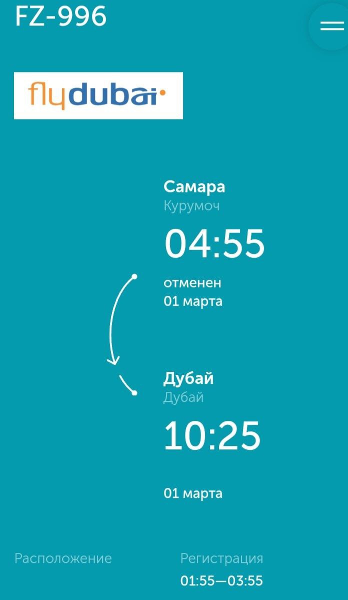Самолет должен был вылететь из Самары завтра, 1 марта, в 04.55. Онлайн-табло «Курумоча» гласит о том, что рейс отменен.: онлайн-табло «Курумоч»ГТРК Самара MAX lВК lОК lСАЙТ