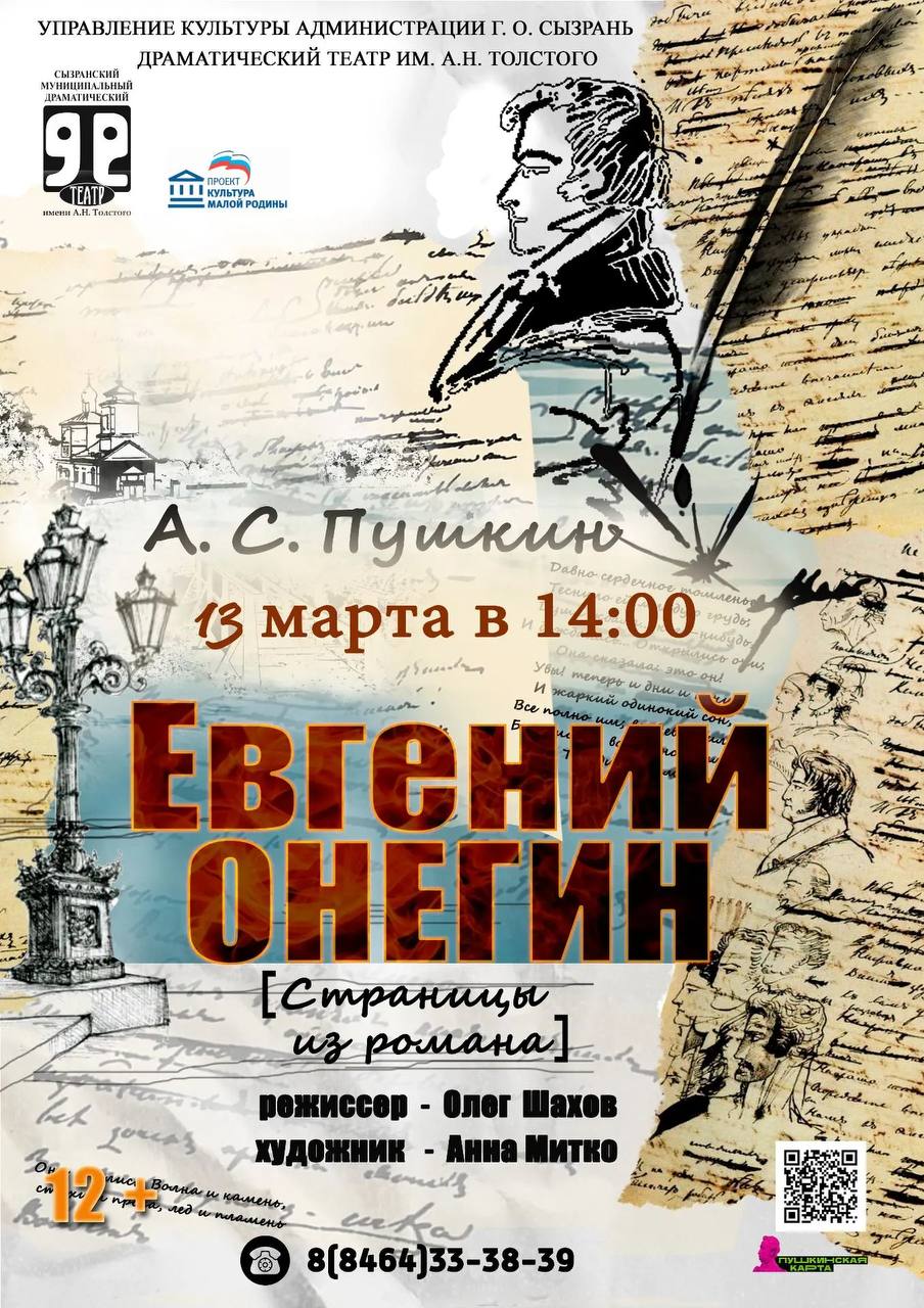 • 13 марта, 14.00 – «Евгений Онегин», страницы из романа А. С. Пушкина.