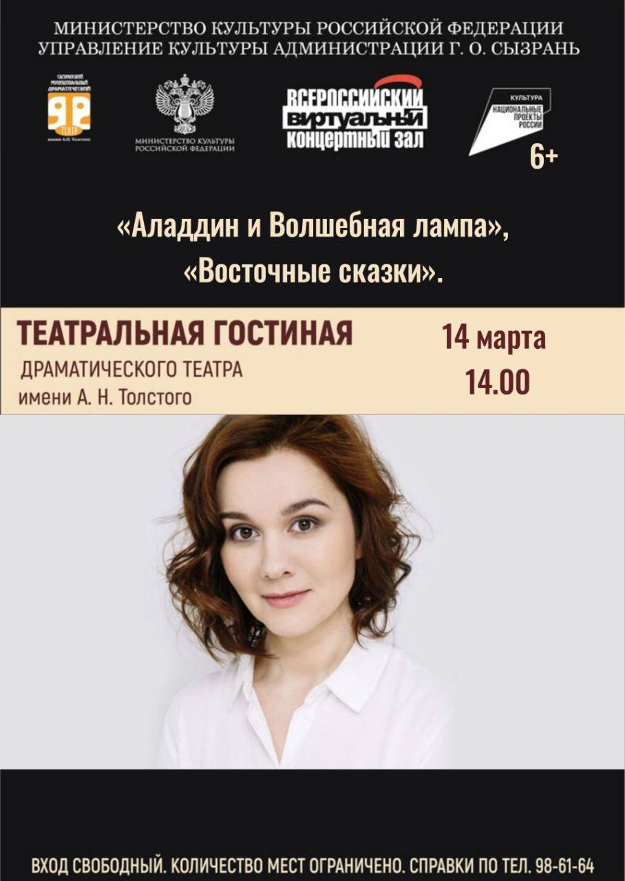 • 14 марта, 14.00 – «Аладдин и Волшебная лампа», «Восточные сказки». Читают Олег Салий и Мария Чувилина.