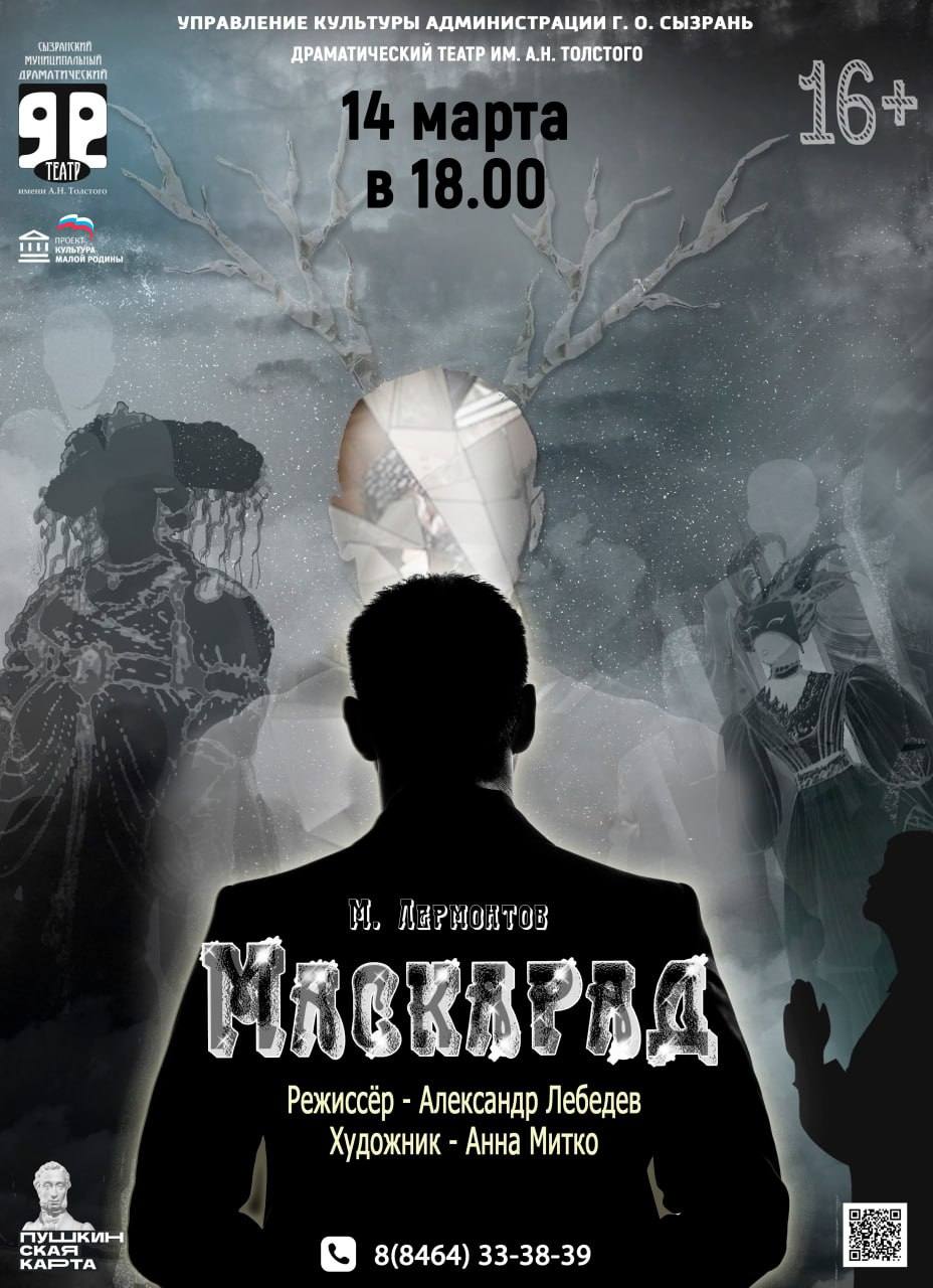 • 14 марта, 18.00 – «Маскарад», драма М. Ю. Лермонтова.