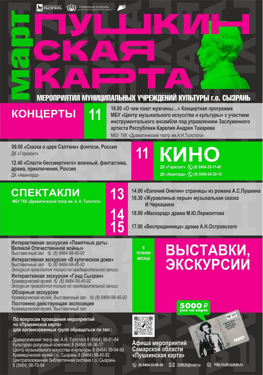 Подробная афиша – в паблике Управления культуры Сызрани.