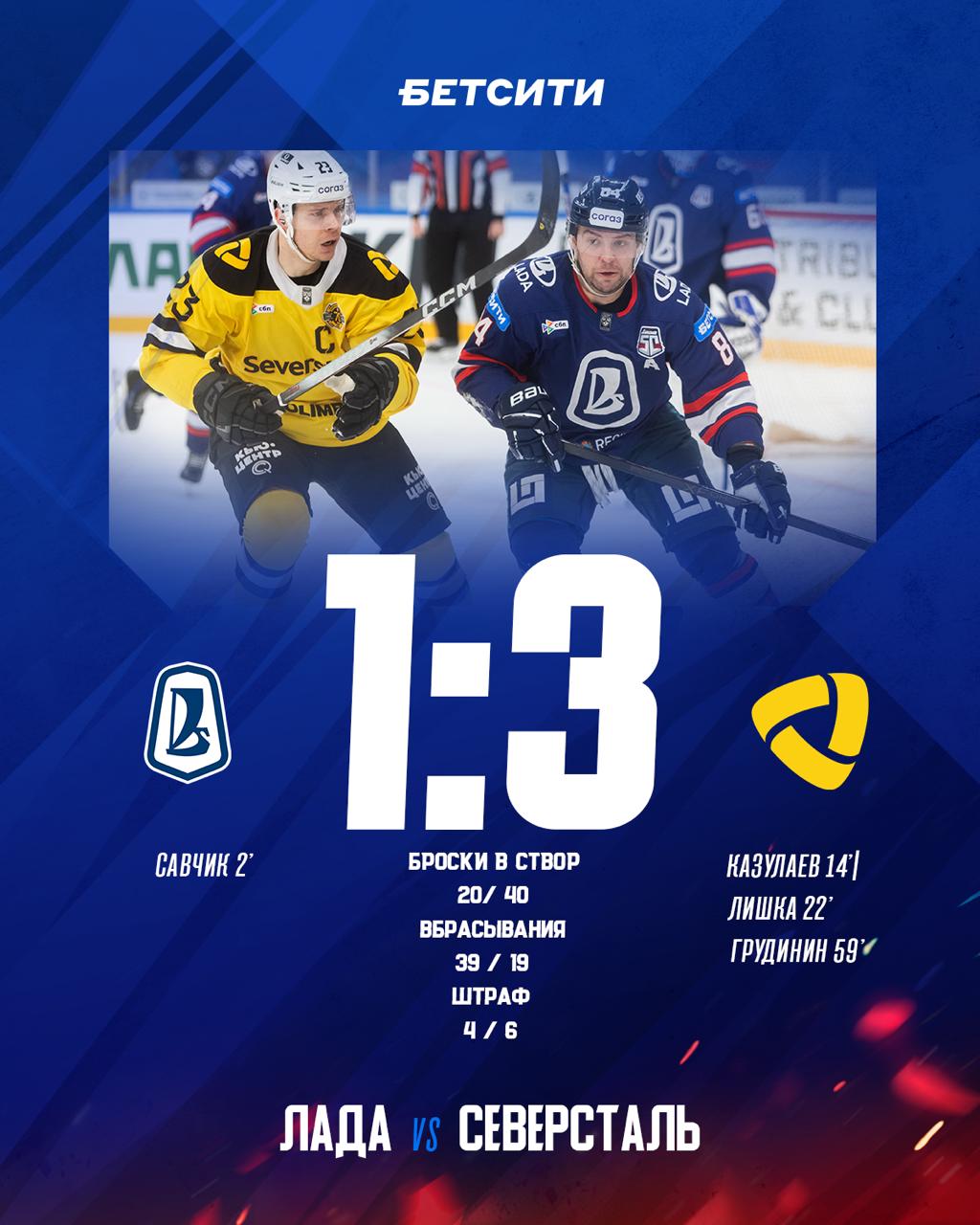 В Тольятти на стадионе «Лада-Арена» прошёл очередной матч КХЛ между «Ладой» и череповецкой «Северсталью». Встреча завершилась победой гостей со счётом 3:1.