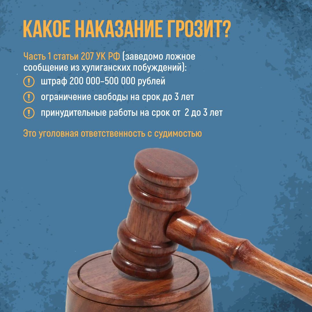 В карточках рассказываем, какое наказание предусмотрено по статье 207 УК РФ и почему об этом важно знать каждому
