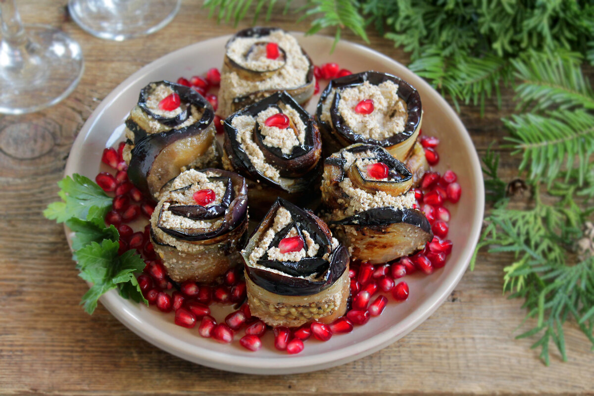 Рецепт 3: Бадриджани - грузинские рулетики с грецкими орехами и гранатом