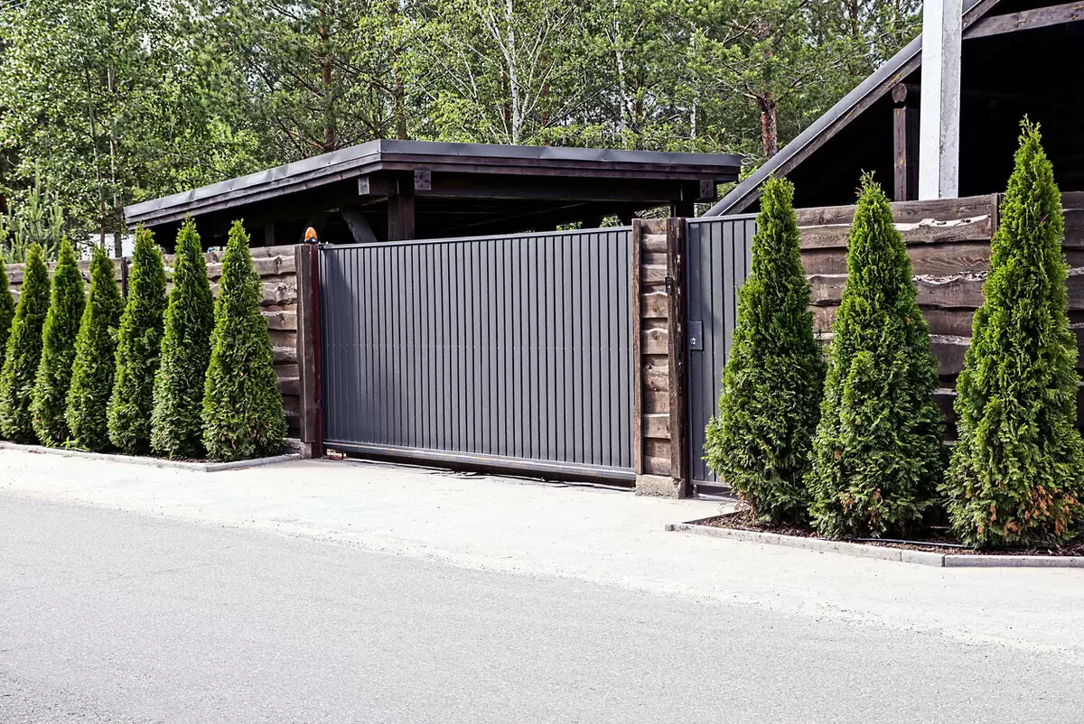 Распашные ворота, как и обычные двери, открываются наружу. Откатные, или сдвижные, работают по принципу шкафов-купе, что позволяет существенно экономить пространство. Подъемные ворота, которые чаще используются в гаражах, поднимают полотно вверх при открывании.