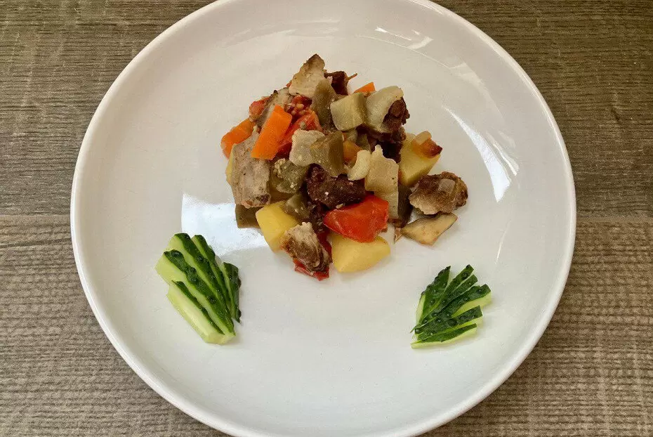 После того как блюдо готово, достаньте его из духовки и дайте немного остыть. Подавайте соте горячим, предварительно украсив нарезанным огурцом. Это придаст яркий цвет и освежит вкус.