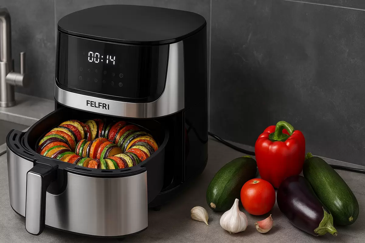 Рататуй - это прекрасное решение для тех, кто любит овощи, такие как баклажаны, цукини и помидоры. Благодаря продуманным технологиям аэрогриля FELFRI, работающего в диапазоне температур от 80 до 200°C, можно достичь великолепного результата с минимальными усилиями.