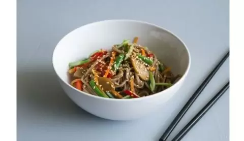 Гречневая лапша с овощами дает простор для кулинарных экспериментов. Попробуйте добавить: