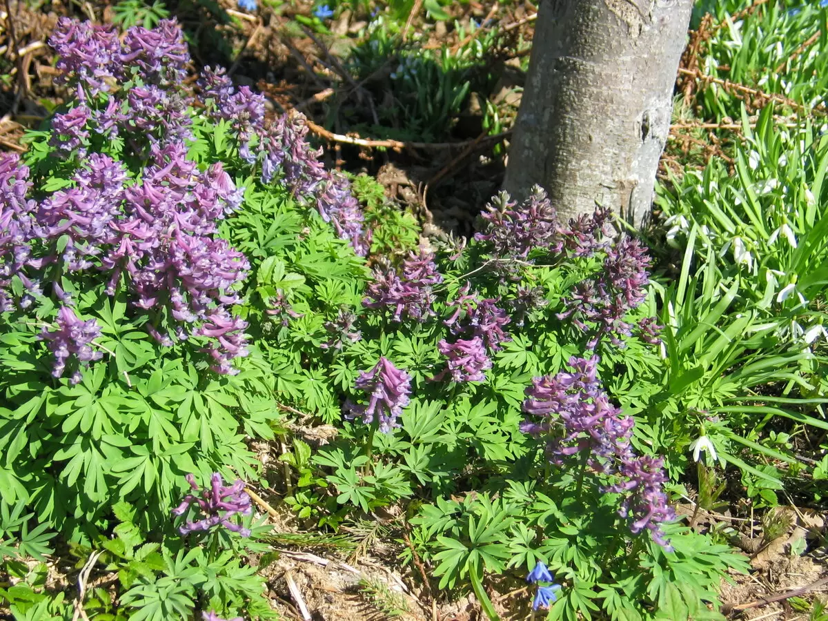 При высадке клубеньки следует углублять на 7-10 см, а в поливе они почти не нуждаются. Лучше всего хохлатки растут на плодородных почвах в тенистых уголках — под деревьями или кустарниками. Особенно эффектно они выглядят в групповых высадках с другими весенними цветами, такими как пролески или подснежники, создавая пестрый цветочный коврик.