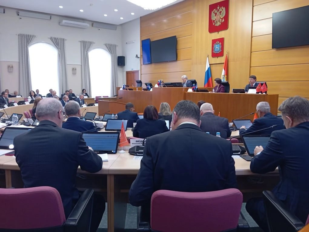 Председатель областного парламента Геннадий Котельников объявил минуту молчания в память погибших в результате атаки БПЛА.
