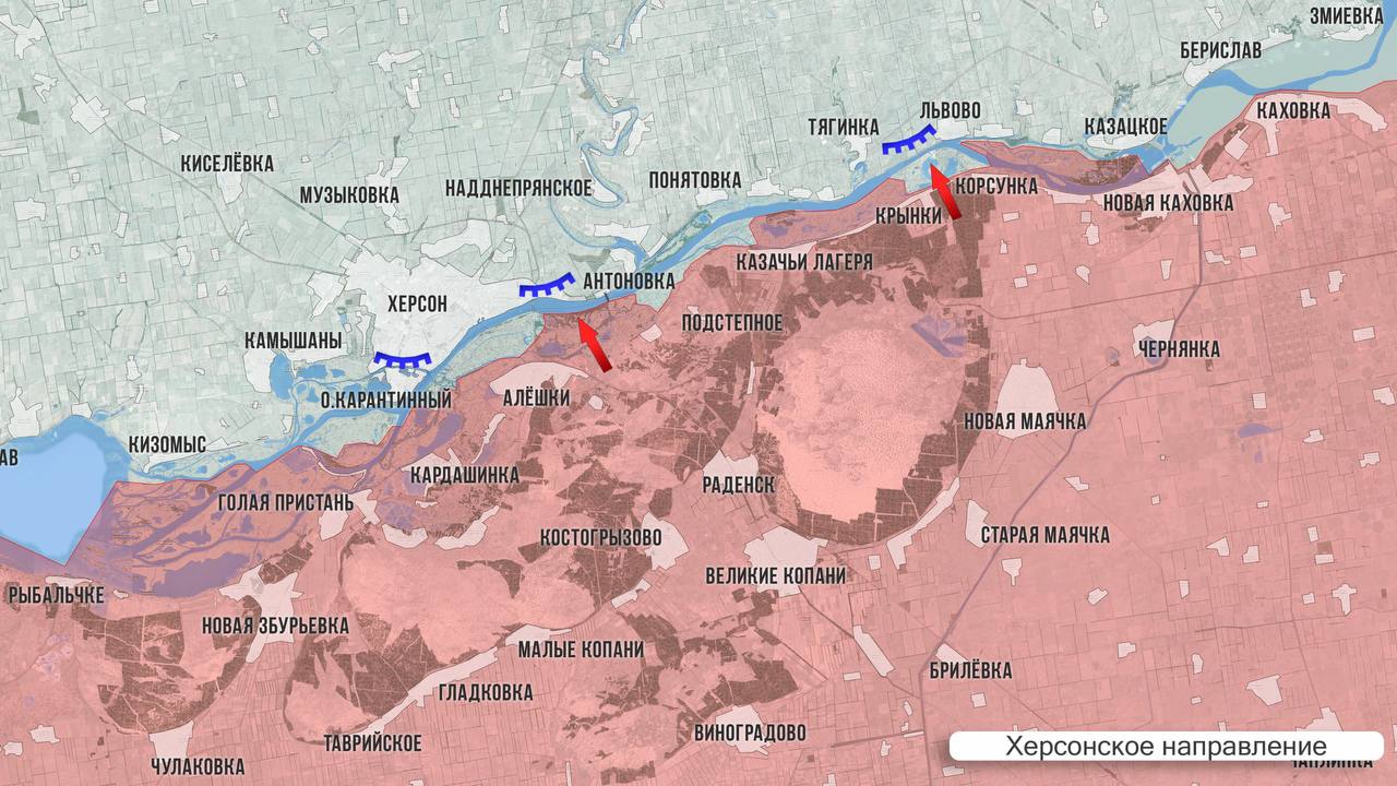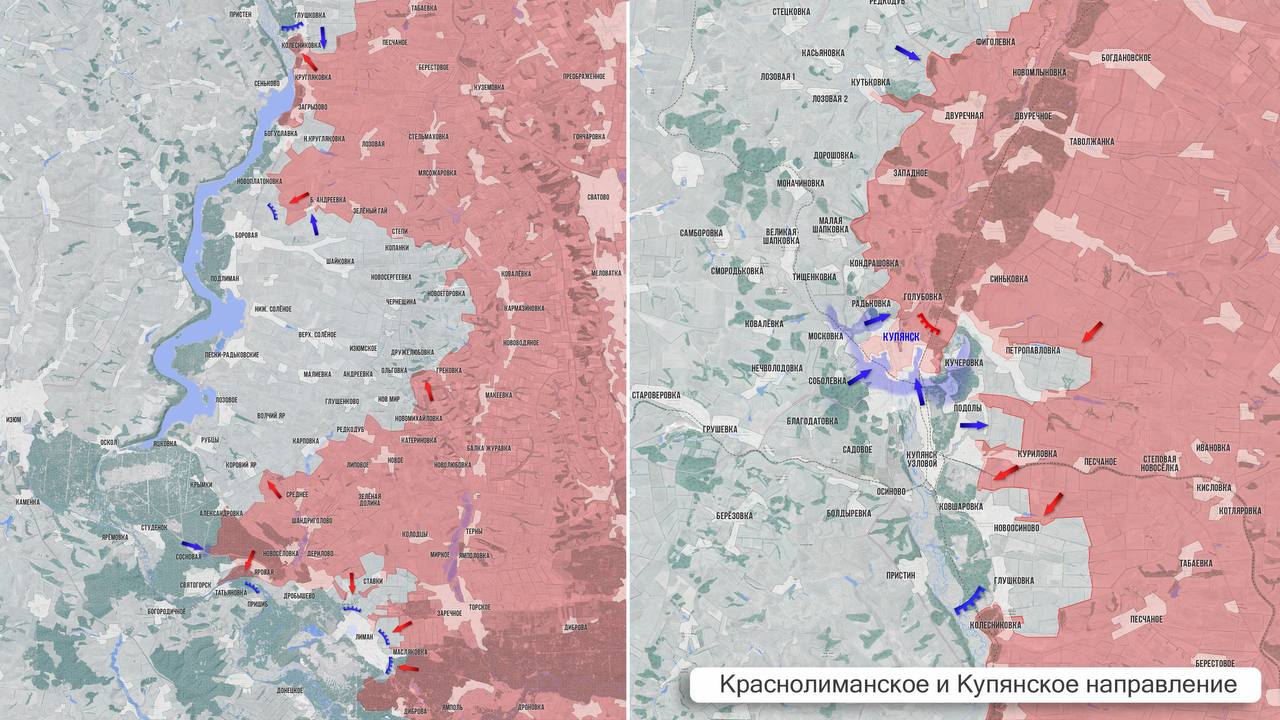 На Купянском направлении ресурсы ВСУ признают ухудшение положения ВСУ в западной части Купянска. Воспользовавшись сокращением сил врага, наши группы всё активнее пробираются в Купянск и бьют по логистике противника. На восточном берегу позиционные бои.