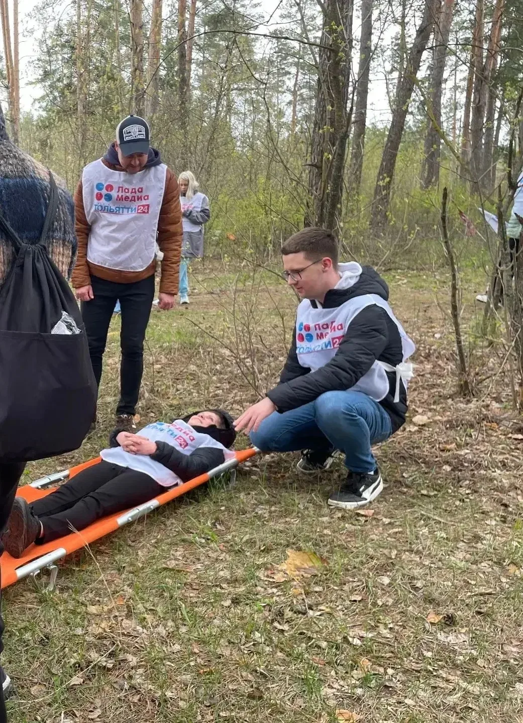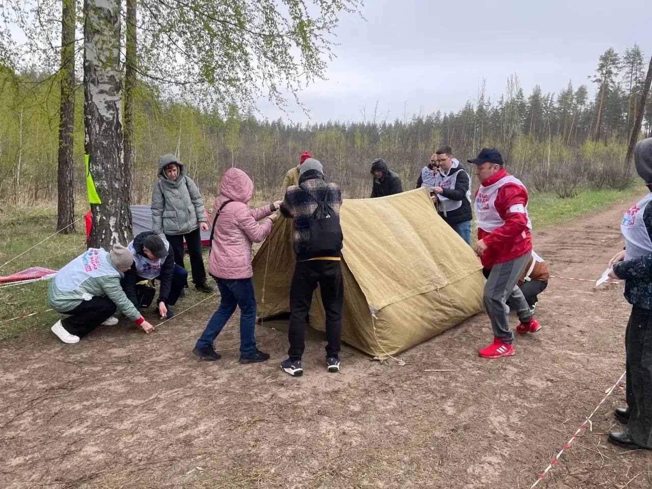 После предстартовой проверки успешно пройдены испытания от вязки узлов до разведения костра и установки палатки. Также на "отлично" коллектив справился с преодолением завала, транспортировкой условно пострадавшего на носилках по пересеченной местности и даже переправой по веревке с перилами! По итогу - взяли золото.