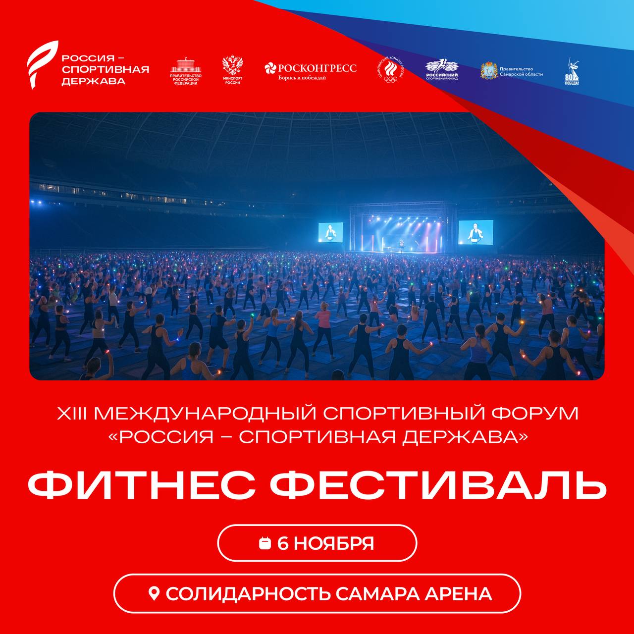 6 ноября в рамках Международного спортивного форума «Россия – спортивная держава» на «Солидарность Самара Арене» пройдет масштабный музыкальный фитнес фестиваль.
