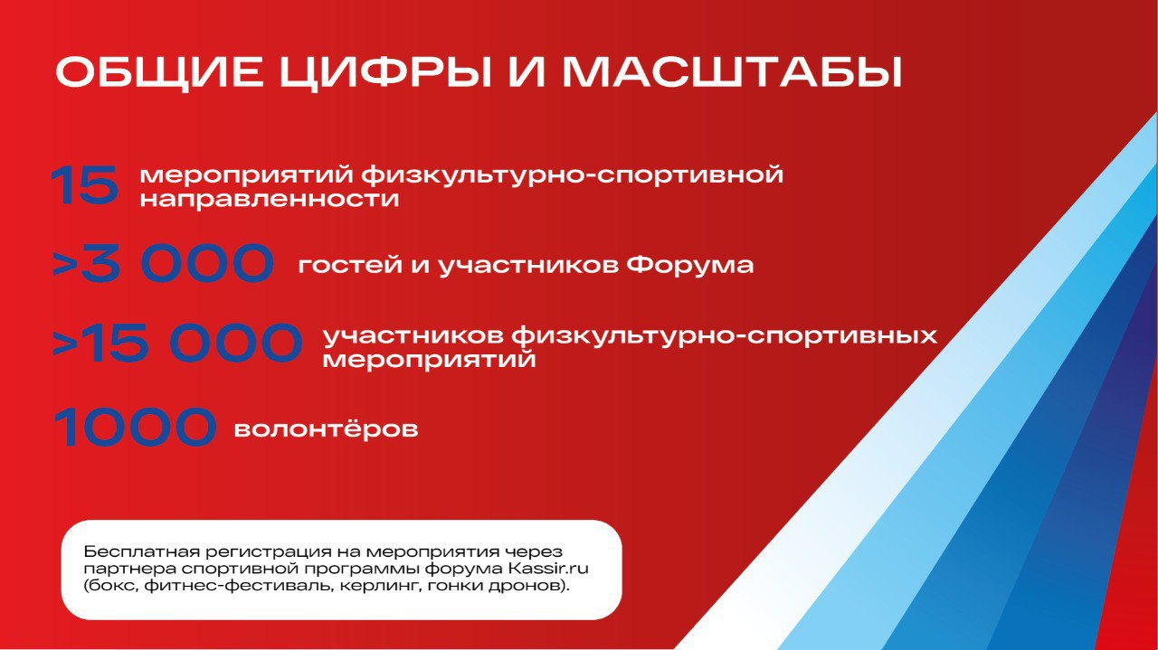 Форум – это не просто встречи и конференции, а яркий спортивный праздник, где каждый сможет стать частью события, почувствовать энергию соревнований, радость побед и командный дух.