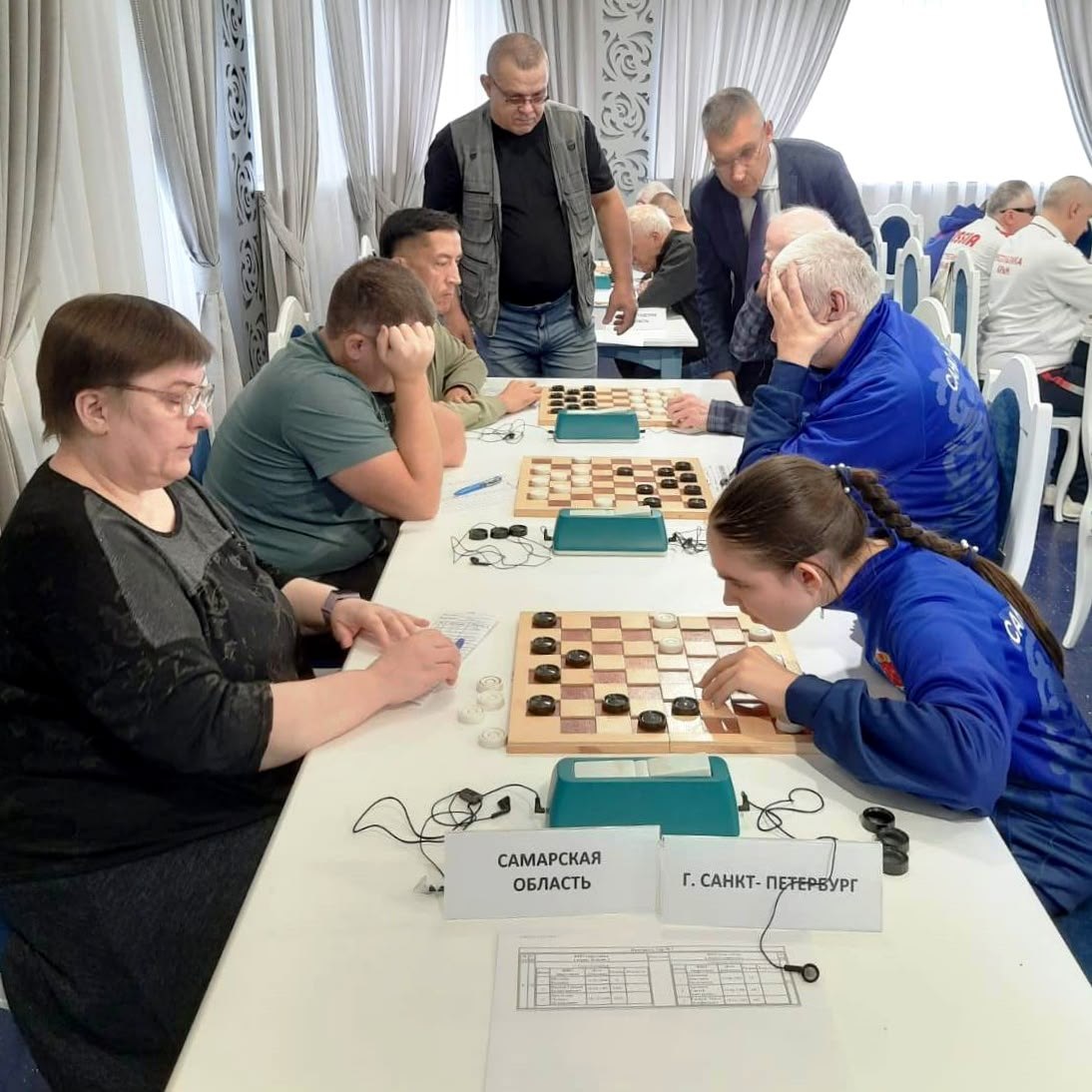 В дисциплине «русские шашки» победителем командных соревнований среди 12 сборных стала Самарская область. В составе нашей сборной выступили гроссмейстер России Виктория Архипова, мастера спорта Эмиль Галиев и Сергей Архипов.