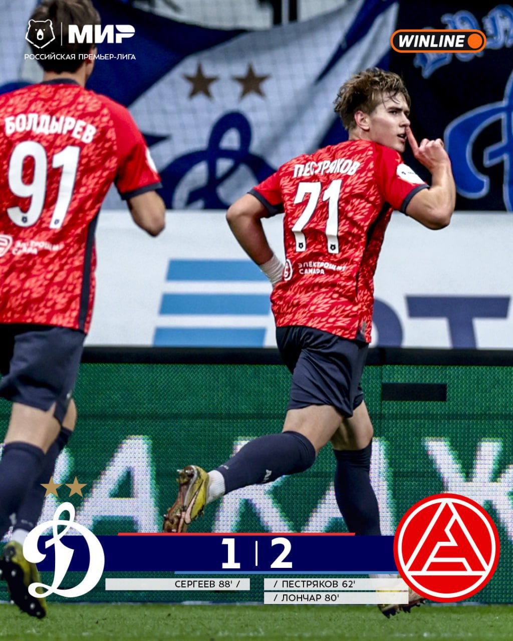 Футболисты московского «Динамо» проиграли тольяттинскому «Акрону» со счетом 1:2 в домашнем матче 15-го тура Российской премьер-лиги (РПЛ).