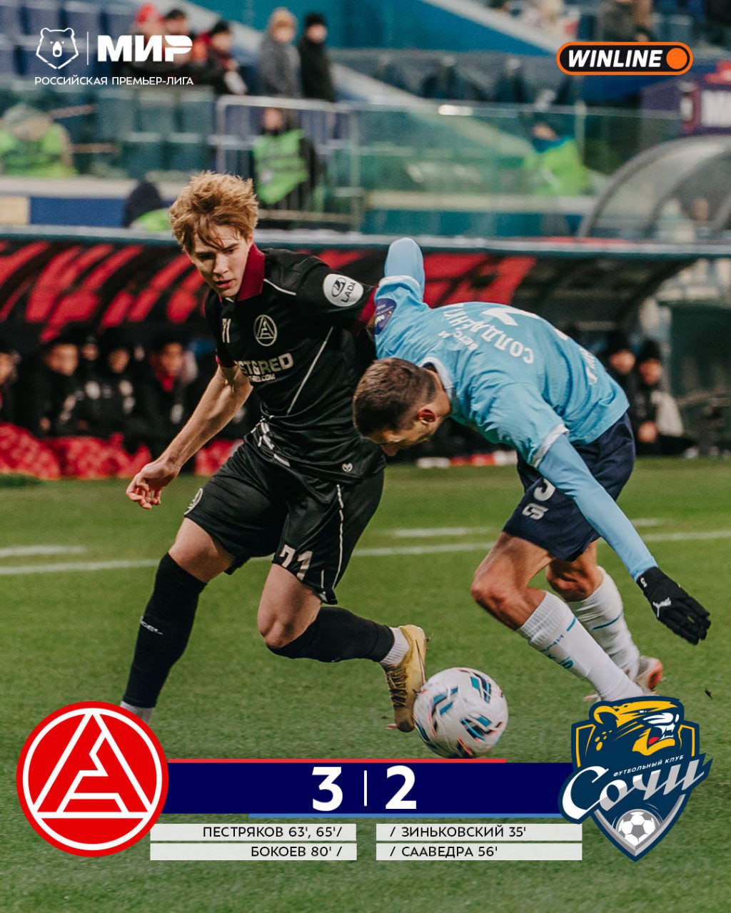 Тольяттинский клуб набрал 21 очко и поднялся на седьмое место в турнирной таблице РПЛ. «Сочи» с восемью очками расположился на предпоследней, 15-й строчке.
