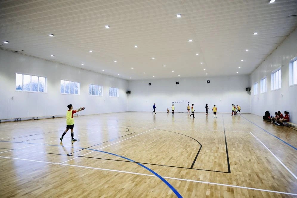 Новый ФОК включает универсальный спортивный зал и зал единоборств, раздевалки и подсобные помещения.