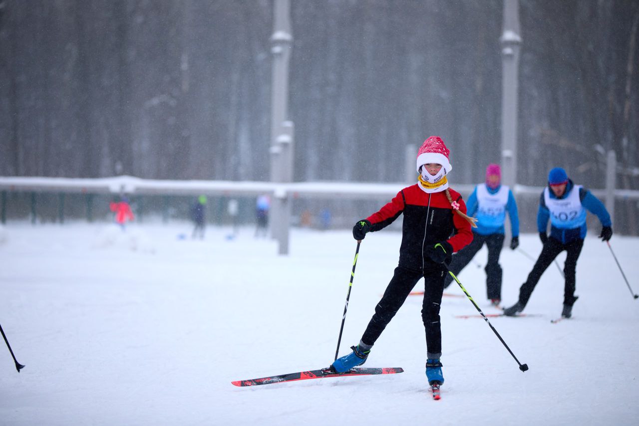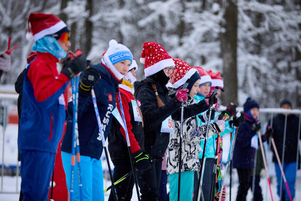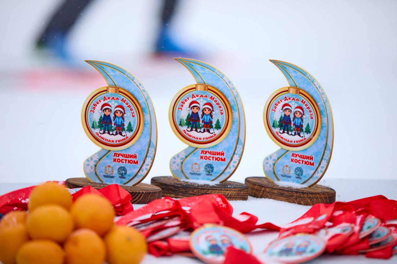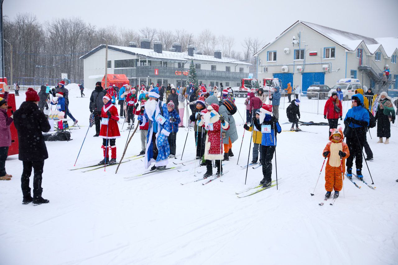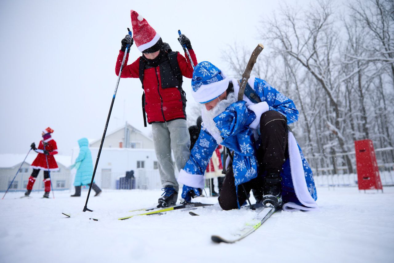 Забег был посвящен новогодним праздникам. Лыжники вышли на старт в новогодних колпаках или даже в костюмах Деда Мороза. На финише участников ждали кубки, медали и ароматные мандарины