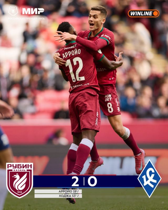 Футболисты казанского «Рубина» обыграли самарские «Крылья Советов» со счетом 2:0 в домашнем матче 11-го тура Российской премьер-лиги (РПЛ).Голы забили Андерсон Арройо (19-я минута) и Велдин Ходжа (53).«Рубин» набрал 18 очков и занимает...