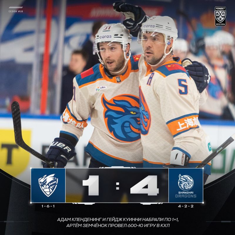Тольяттинская «Лада» проиграла «Шанхай Дрэгонс» со счетом 1:4 в домашнем матче регулярного чемпионата «Фонбет» — КХЛ.В составе победителей шайбы забросили Ник Меркли (2-я минута), Гейдж Куинни (3, 34) и Спенсер Фу (57). У проигравших отличился...