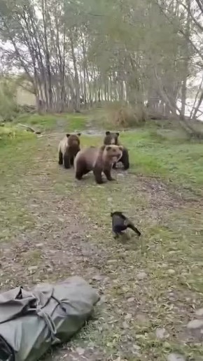 А сцену снимал хозяин собаки, который со своим питомцем отдыхали в лесу. Стоит отдать должное маме-медведице, она настороженно наблюдала за происходящим, а потом просто удалилась в лес со своими детишками.Подписаться на @truekpru |...