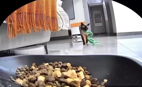 Как только автоматическая кормушка выдала корм, котейка схватил своего лучшего друга (плюшевую змею) и принес ее к миске. А потом еще долго следил, чтобы все было поровну)Подписаться на @truekpru |...